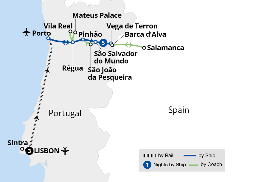 Fly to Lisbon and explore Sintra's palaces on a Portuguese voyage of discovery before embarking on a seven-night Douro cruise. Drifting through golden valleys and past enchanting towns and wine estates, our cruise reveals the best of this serene river, stopping at wonderful ports enroute. We set sail from Porto, tracing the Douro's path. Visit...