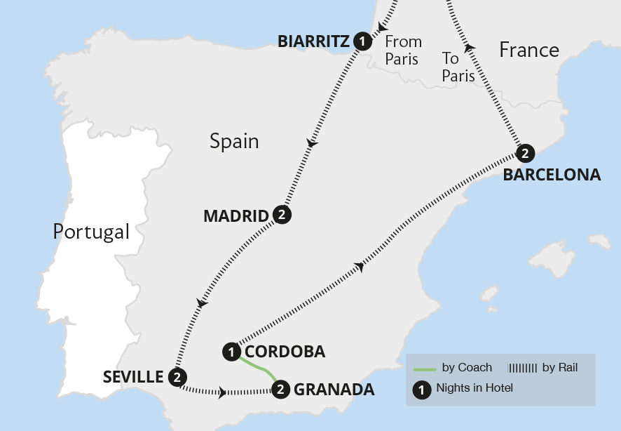 With over 50 years' experience crafting exceptional rail holidays, Great Rail Journeys are experts in showcasing the true highlights of Spain - whether it's exploring the Moorish architecture of the Alhambra in Granada, uncovering the works of renowned artist Salvador Dali or sampling traditional Basque pintxos in the gastronomic city of San Sebastián.