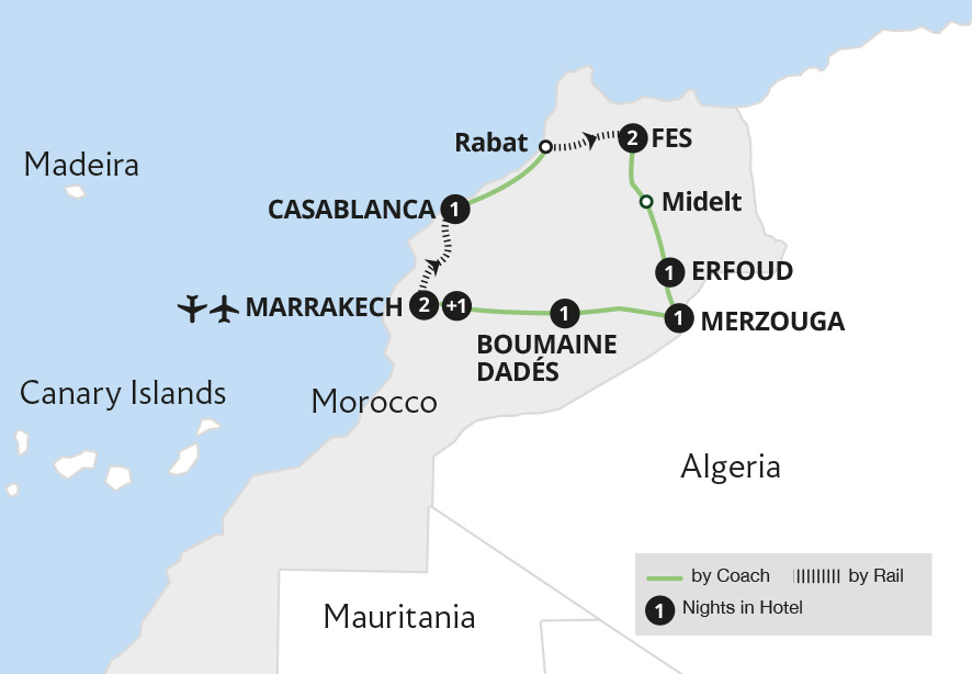 On a journey through Morocco, discover the rich heritage of its imperial cities and the timeless beauty of the Atlas Mountains and Sahara Desert. Explore the historic streets of Fes, Marrakech and Rabat, where bustling souks, intricate palaces and grand mosques offer a window into Morocco's past and present. Venture into the High Atlas,...