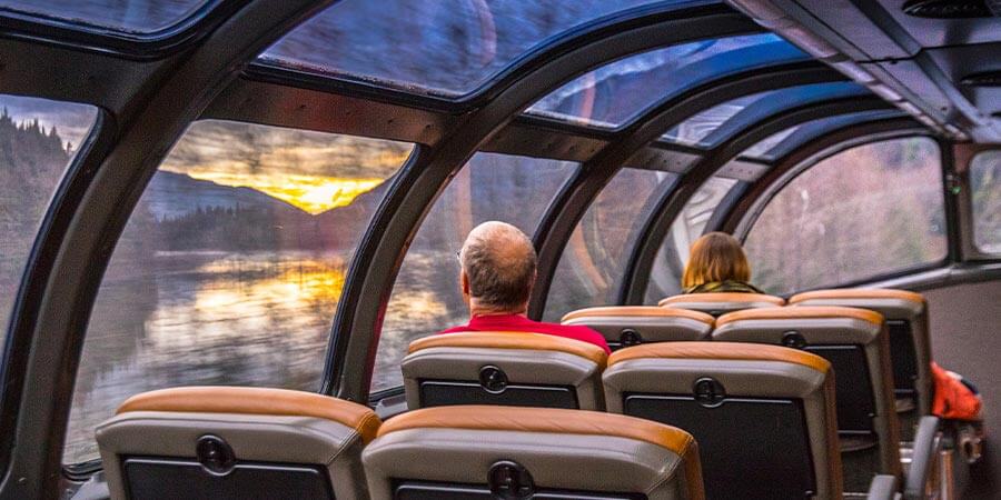 Park and the Rocky Mountains. The train travels along the Fraser